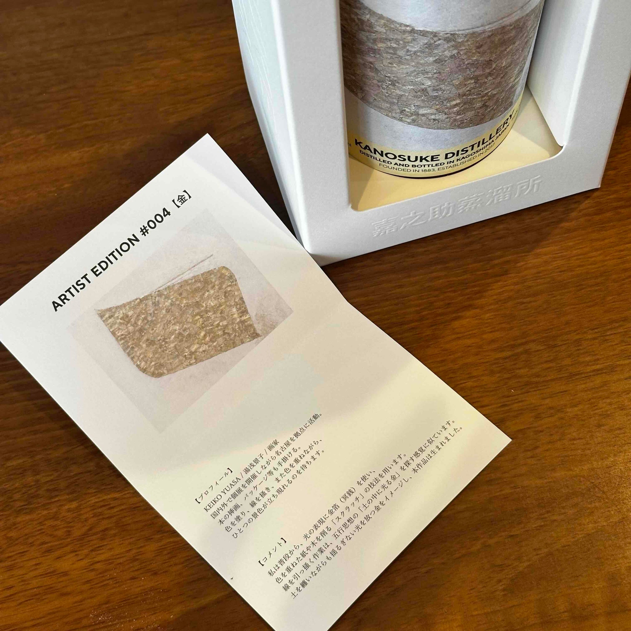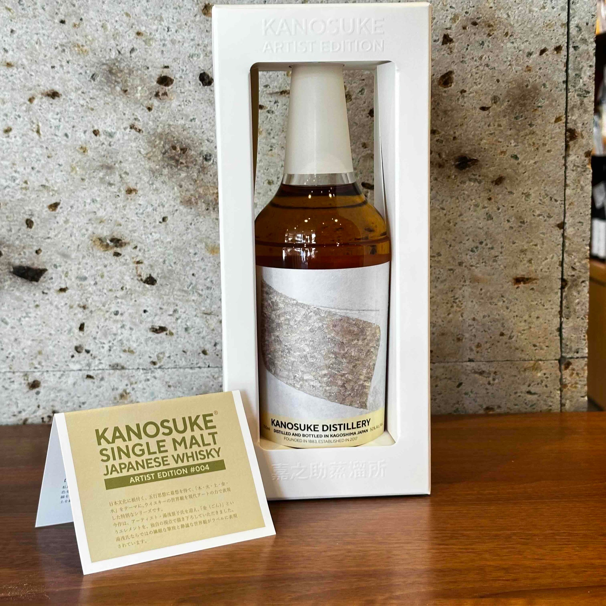 「Artist Edition#004」は、「金(ごん)」にインスピレーションを受け、KANOSUKEの象徴でもある3基のポットスチルを駆使し、ノンピート麦芽を使用した多彩な原酒をヴァッティング。